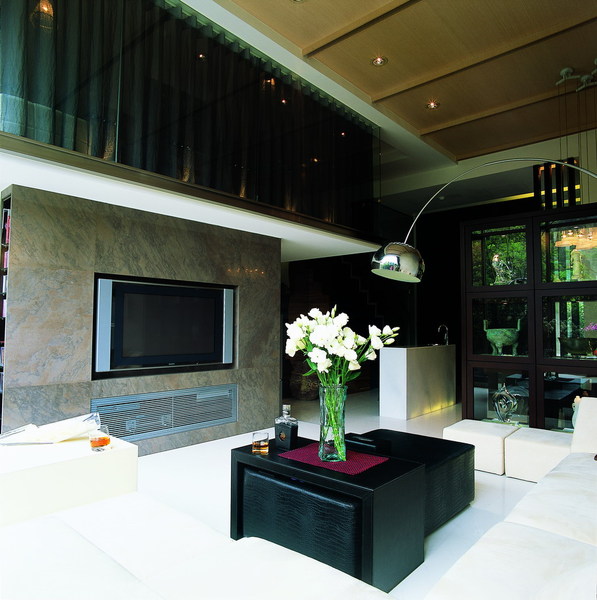 電視牆在開闊的空間裡,創造充滿趣味的場域變化。雙動線的設計概念,增添了平面空間更豐富的層次感。