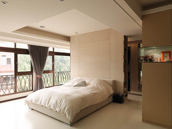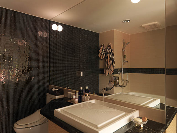 一位事業有成的女性,對居家的需求是可以放鬆心情、解除疲勞、仰望星空的環境及大型更衣間,因此採用開放式無門的空間。打開窗可讓山谷間的自然風進入,夜間的星空與美麗的馬賽克磁磚,拼成的星空,相映對超白烤的電視牆及B&O音響,竹子壁板及後面置物更衣室和展示台上的精品,把這間小套房打造成「design hotel」的精緻美學。