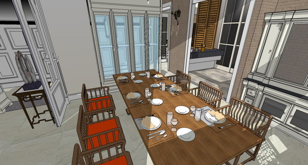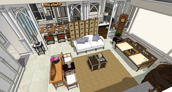 我運用美式古典線板、璧爐,作為展示陳列明代傢俱的空間