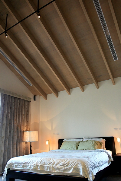 國內居家空間,即使是挑高的別墅建築,也大概都會採用平面式的天花板結構,比較少見斜角的天花板,你大概聽過雙層巴士,但大概很難想像一般人家中會有個雙層的儲衣櫃,和一個挑高幾近6米的斜飛式屋頂的夢幻主臥室,這大概只有在BALI島的私人VILLA裡才見的到吧!