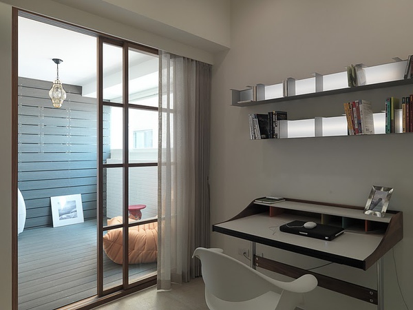 在書房可以隨時瞭望明亮的窗外景致,書房空間變的開闊,閱讀累了,也可到此休息,喝個咖啡,曬曬陽光,當然也可擺設一些盆栽,拈花惹草,怡情養性一番。