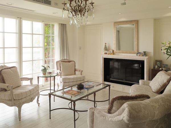 劉宅的客廳沙發擺設異於常軌,三人座布沙發與兩把單椅相望,電視反而擺在側邊,不是正對著沙發。這樣的設計,顯現在劉家,電視已經不是客廳的主角,隱身在壁爐後的液晶電視只是被偶爾使用的設備,不該喧賓奪主。