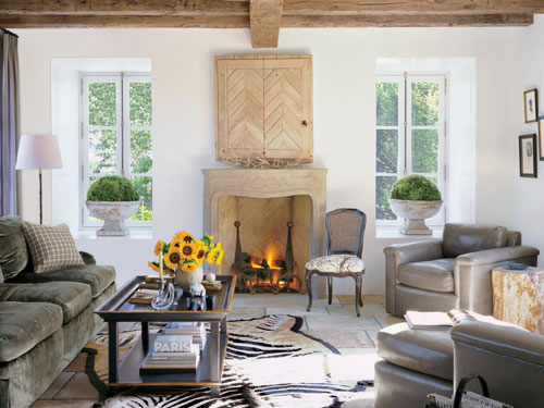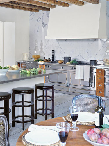 本案將位於普羅旺斯常見的天花板搬到加州,斑駁的石牆則是以灰階的色調來代表。法式家具著名的彎曲線條,成為美學意念的延伸。