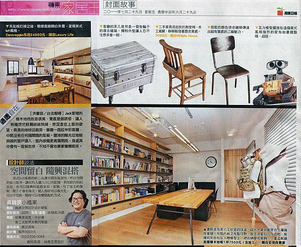 尚展最近發表了【紐約Loft風】Jack在天母新住宅的案例,引來蘋果日報家居版的關注,想要採訪報導Jack的住家。我們特別聯繫了Jack,安排接受蘋果日報家居版的訪問。