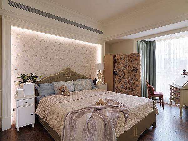 這是巴黎人風格,氣韻天然,不張揚也不過度低調,只是恰如其份的佈局。主人家的臥室也是如此。只是簡單的屏風、一個寫字櫃,又剛剛好表露了主人的氣韻。
