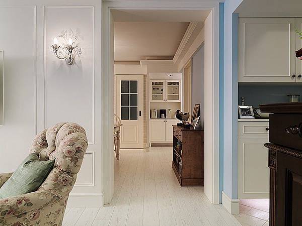 靠著窗戶旁邊的梳妝台,光線非常充足,門片打開是三面鏡,Nick太太很喜歡這裡常坐。這樣的搭配組合,讓Nick夫婦感受到無比的舒適,這樣的臥室氛圍,連睡著了都會忍不住偷笑,要不安然入睡,還真不容易。