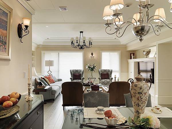 陳董是成功的企業家,做事有條不紊,為了愛女在台北唸書方便,再添購新房,並且完全以女士的喜好與需求為主。美式新古典的風格,是陳家母女的最愛,高雅舒適,有適度華麗的美感,但不是過度的裝飾!