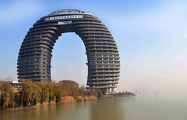 他的特別之處,是融合太湖的水上景觀,採用了別緻的指環型形狀,蓋在湖面之上,讓人看了目不轉睛,不得不留下深刻印象。