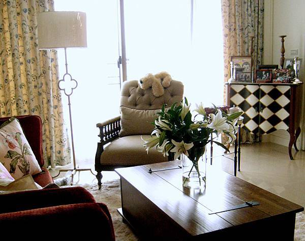 因為民情使然,設計師在設計居家空間時,當然也會把花藝帶到室內空間裡,美國百大設計師Suzanne在許多設計案裡,都有花藝的安排,連為自己設計的住家,也隨處可見花藝的蹤跡。