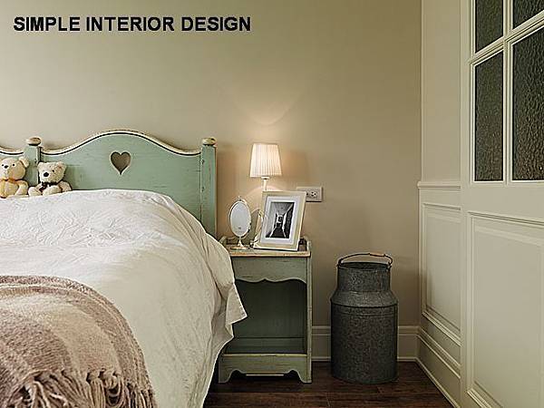 這張可昂居的愛心床是屋主的最愛,本身已夠搶眼,主牆用暖色平衡,右方的復古牛奶罐是尚展的收藏,畫龍點睛帶出南法鄉間的氣息。