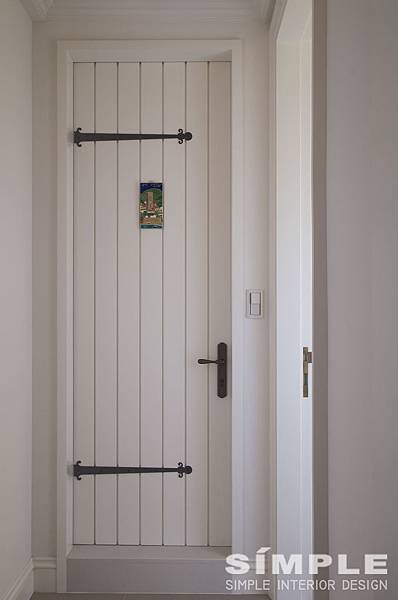 空間韻味是都會鄉村最難也最具挑戰之處,每個細微處的考究,是設計師一層一層的安排,所形成的空間藝術,就像走道盡頭的門片上,特地訂製歐洲鄉間才有的仿舊鐵件,搭配屋主的陶瓷掛畫,走道的門片變成迷人的空間端景,恰到好處的帶出德國鄉間的感覺。