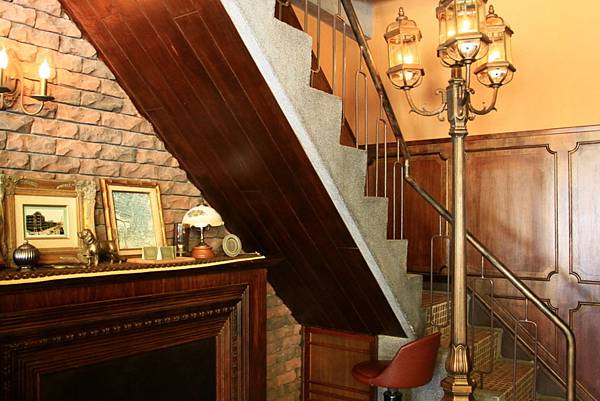 經營者把前後棟打通,用舊碎磚浴缸與家具做佈置,銜接前後棟,又挖空地板,露出裸露的鋼筋、營造通透感,再搭配大片的書牆,長條的木梯,創造了古樸的文學味。