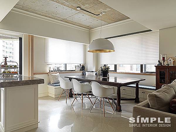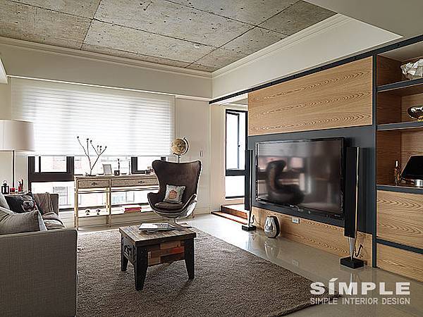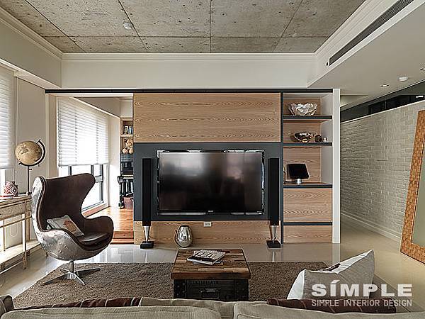 柯小姐夫婦曾在國外住過一段時間,喜歡低調雅致的東西,我們也選用自然素材來讓她的家更符合個人味道,電視櫃沒有繁複的造型,天然橡木紋就是最好的裝飾,呼應裸露的天花,帶入些許原始粗獷感,以食物做比喻,如同海鹽般,精準的比例才能提出鮮甜自然的風味。