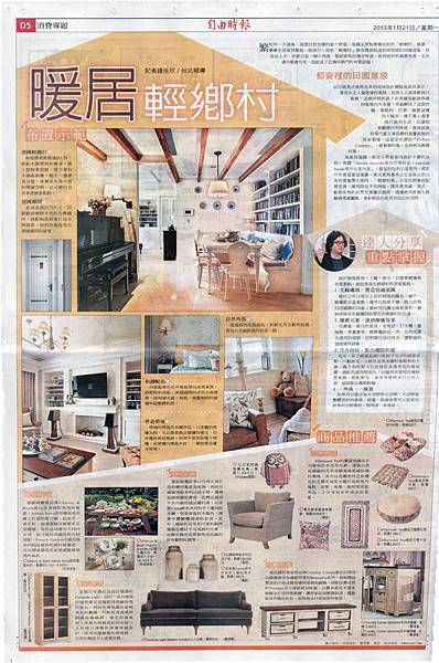 1/21自由時報以目前很流行的輕鄉村風格做了全版報導,請我化身達人,給予讀者這風格最快上手的建議,以下列出重點文字也跟網友分享~