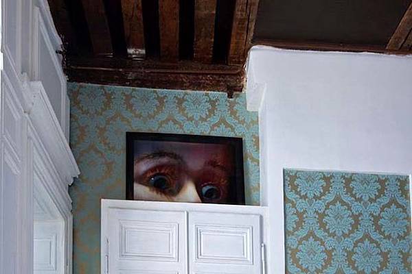 臥房貼有古典花卉壁紙,選用法式傳統造型門扉,衣櫃上的雙眸畫作,有著濃厚藝術性。