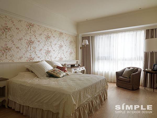 女性都喜愛的粉色花卉壁紙,局部用在臥房主牆,是不是就瀰漫浪漫情懷,走進其中內心也會跟著柔軟平靜。