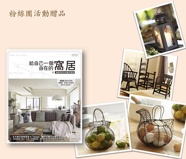 預告部落格的朋友,Alan-Chi-Ming-Wu粉絲團https://www.facebook.com/pages/Alan-Chi-Ming-Wu/105551206613(右邊按讚即可加入)將首次舉辦分享。留言。送美國pottery Barn家飾粉絲活動。只要分享活動連結並留言就有機會得到縮小版模型溫莎椅、梯背椅、圖書館椅及鄉村風收納籃等,這些都是我們在佈置時的壓箱寶,詳細參加辦法粉絲團會公布,記得先加入粉絲團喔。