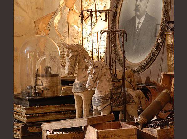 古董門片前搭配古典相框、幾件陶馬與老木箱,這樣的角落是不是舒服又有時光的味道,不必遠求,試著蒐集一些周邊的老東西,並給它們安排一個角落,運用簡單的前低後高擺放原則,就能輕易的佈置出有在地文化的復古角落。