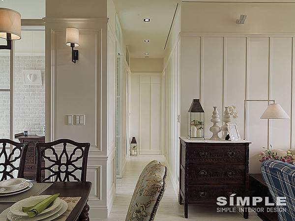 王小姐的舊家有許多中式的家具與擺飾,像是木櫃子、青花瓷等等,搬到美式風格的住家的設計裡,這些老件,反而凸顯了特別的韻味。