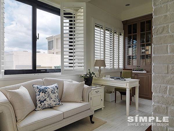 寬頁的百頁窗在王小姐的家中,發揮了絕佳的漢普敦海濱度假風的情調,當然這最適合搭配陽光燦爛的日子,不管是開、闔,全開或是半掩,隨著陽光的移動,百頁窗的每一個表情都處處動人。
