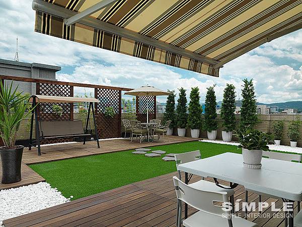 因為買的是頂樓的房子,樓頂的平台也屬於王小姐所有,她便規劃了個空中花園,擺上搖椅、野餐的餐桌餐椅,買了樹、盆栽,進行綠化造景。在秋天的清晨或是黃昏,在中秋的夜晚,除夕的跨年,招來三五親朋好友,在此賞月觀星,休閒人生,就太愜意了!