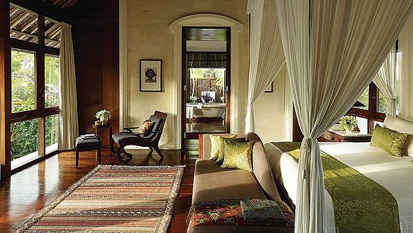 Fourseasons Resort 在峇里島有兩間Villa,一家在Jimbaran 灣,一家在Ayung 河畔。兩家Villa都發揮傳統峇里島建築的古樸氣息,處處陳列峇里島的木雕藝術及精緻的手工藝品,豐富Villa的藝術氣息。