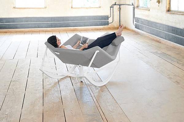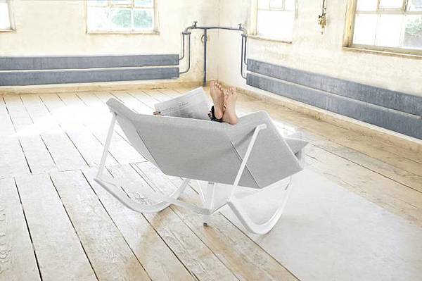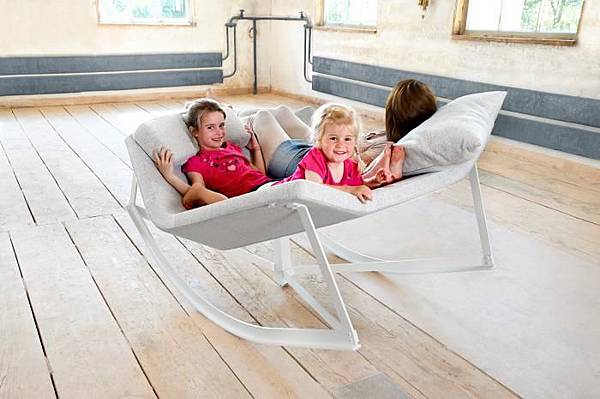很多人都有坐搖搖椅的記憶,或是木頭,或是皮椅,但多是一人獨享。Markus Krauss設計了一張叫做SWAY的座椅,既是躺椅又可以當做搖椅來使用,椅子的體積很大,不但兩人同時使用沒有問題,甚至可以親子三人一起使用。