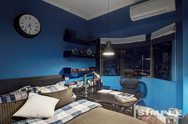 男孩的房間倒是比較好辨認了,清爽的藍色調,正是男孩性格的表徵。這房間的特色是,所有的家具、家飾,全部採用IKEA的產品,應用一些搭配組合,調理成一種不太像是IKEA的IKEA。