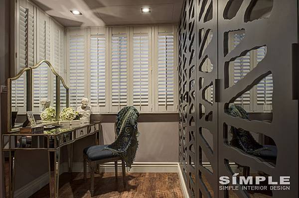 像這個主臥衣櫥面板的設計,幾番討論之後,我們把幾個想法,描繪調整,具體實現成為吸睛的作品。像是配上主臥大片連續的百葉窗,營造出屋主心目中最佳場景。