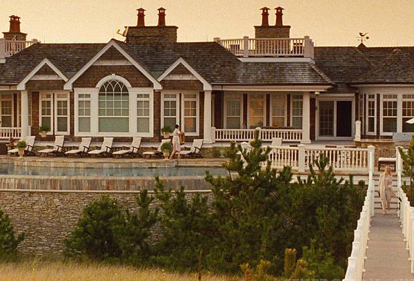 凱特布蘭琪飾演的茉莉在漢普敦招待妹妹和妹婿時,隨手將Hermes包擱在地板上,藉此呈現茉莉原在紐約的富裕生活。漢普敦度假別墅給予人的印象,除了前門的陽台,別墅後還有個別緻景觀台,景觀台上舖滿石板,烤肉架以岩石堆砌而成,柚木躺椅上的白色靠枕,彷彿不畏日曬雨淋似的,維持原本的舒心色澤,令夏日的暑意消退許多,這些經典的漢普敦別墅印象從以往至今仍舊受到許多人的喜歡。