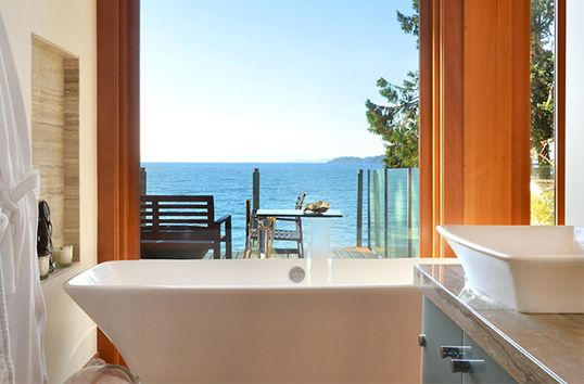 若是能跟自然場景融合,那麼這完美的浴室就更迷人了。前提當然是採光充足,最好有大片的窗戶,可以看到戶外的美景。