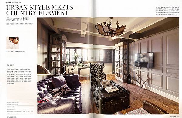 尚展設計作品曾在2011年得到現代裝飾雜誌每年所舉辦的「現代裝飾國際傳媒獎」年度家居空間大獎 (請參考尚展設計舊文 http://simpleintro.pixnet.net/blog/post/36374166),今年以最新作品更是受到現代裝飾雜誌的青睞,受邀上雜誌版面,美式都會鄉村風格適用於居住在城市裡,嚮往自然的屋主。