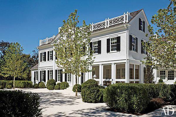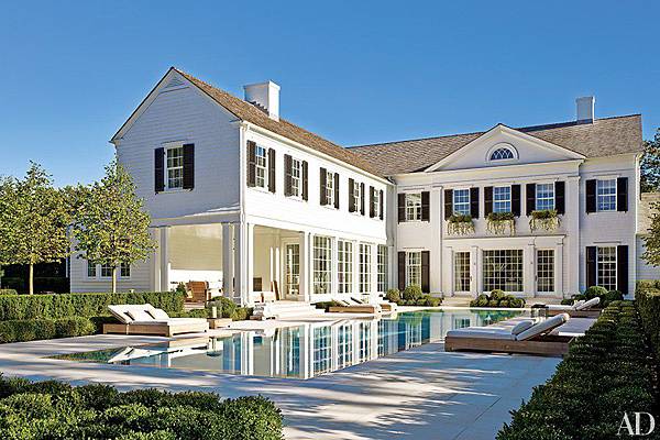 來自英國到紐約打拼的帕菲夫婦,選了這間離南漢普敦海邊只有幾條街道的雙層住宅,做為他們退休後的居所。臨近海邊的住宅,總是勾起我們美好的想像。帕菲夫婦退休的住宅保留了原有的殖民風外觀,黑色木百葉窗對照白木牆,顯得格外耀眼。瞧那屋頂上柵欄,靈感來自於中式齊本德 (中式齊本德和美式殖民風的介紹請參閱舊文: http://goo.gl/JMn22F),洋溢著海洋度假風格的房舍,在自家後院另有座以鑄石鋪成的泳池,伴隨屋主渡過悠閒的退休時光,舒適愉悅的環境,醞釀出靜好的氣息。