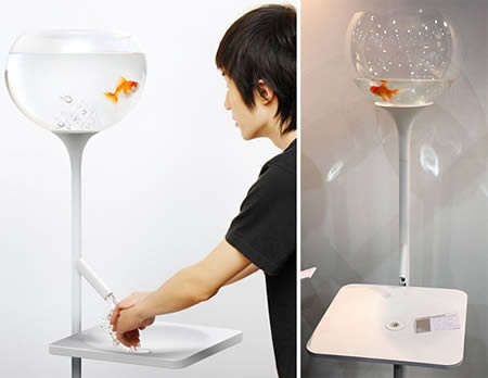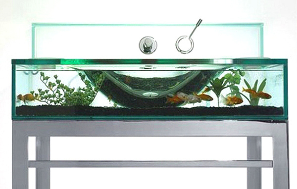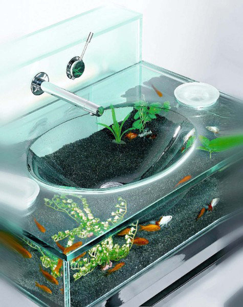 這個洗手臺魚缸,把魚缸跟洗手臺結合,創造了美妙的視覺經驗。