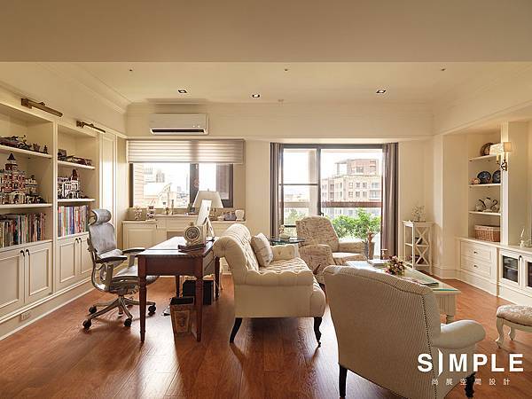 為追求輕鬆自在,我們盡量把空間放大,讓光進來、讓風進來,客廳跟書房是連在一起的,沒有隔牆,甚至沒有玻璃、沒有拉門,一張放在沙發後方的書桌,就代表了這是書房,一個無邊際的閱讀區。