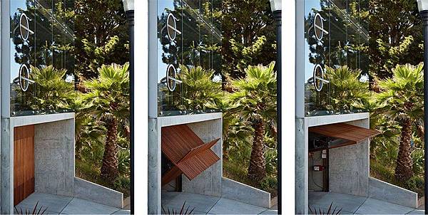 整動建築主要是玻璃與剛骨的結構,玻璃的通透性,實現了Peter Russell-Clarke夫妻對視野與陽光的需求,而如何解決維持隱密性的需求?以再生柏樹做成的可移動式的百葉窗,解決了這個問題。