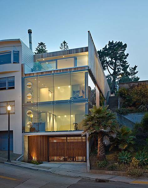 Peter Russell-Clarke 與太太的居所,位在舊金山克拉克陡峭的山坡上,樓板的面積並不大,夫妻倆對房子最大的需求是:蓋一間通透的玻璃屋,引進最好的陽光與是也,又能擁有隱密性。