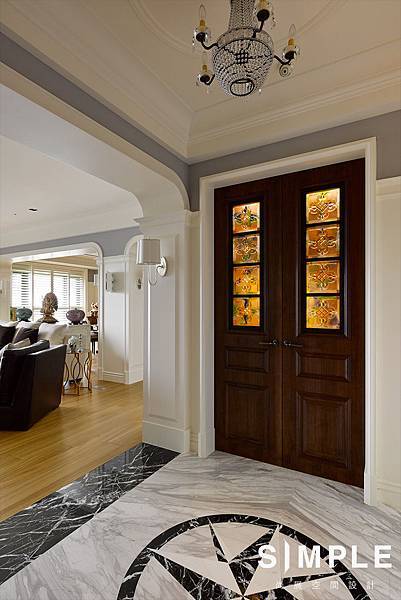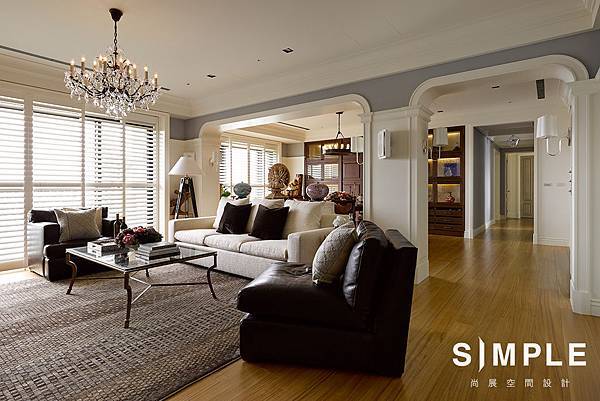 張宅的美式新古典風格,主要展現在整體格局的拱門設計,拱門是空間區隔的重要象徵,區隔了客廳、餐廳、臥房的空間,有著一進、二進門的開闊氣勢。