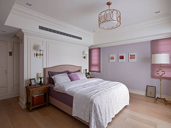 許公館的主臥室既寬敞又浪漫,配置了獨立的更衣室,讓夫妻倆可以自在的儲放衣物,更衣打扮。