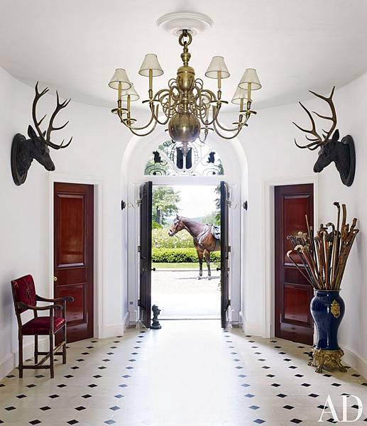 這家的主人,肯定是個愛馬的人士,馬與日常生活密不可分。一座19世紀荷蘭的吊燈絕對是吸睛的主角,而兩側鹿頭與馬具的圖騰,則完全交代了主人的嗜好。