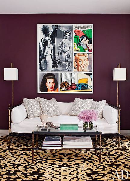 這就是一個充滿做白日夢氣氛的佈置,這是位於洛杉磯的一個書房,牆上掛著漫畫風格的拼貼圖像,這是McDermott & McGough 的作品,給這沙發床賦予了諧趣的想像空間。