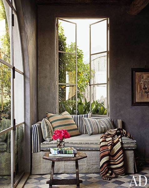 這個很有個性的條紋沙發床,擺設在一個海濱別墅的一個角落,有著海洋波浪的律動感,很沉穩的灰色調。
