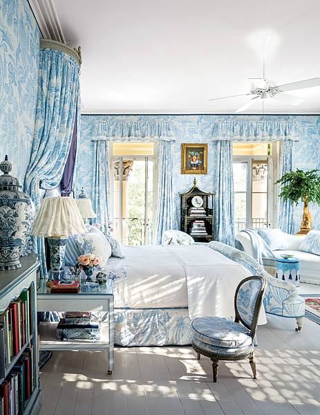 但主人選擇了比四柱床更豪華大氣的擺設,從天花板垂吊下來床簾,為這臥房增添優雅貴氣的美感。