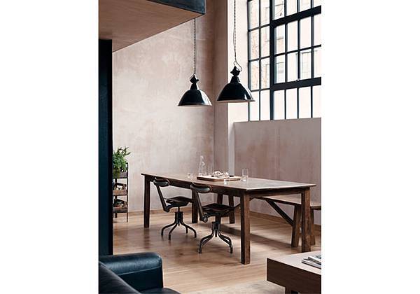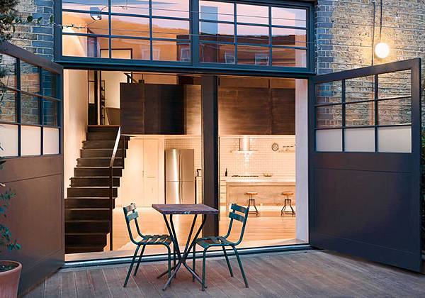 除了鐵灰的金屬欄杆鐵件,Clapton Warehousem 運用木材的木質色調來中和,再搭配燈泡色的燈具,把溫暖的色調帶進室內。