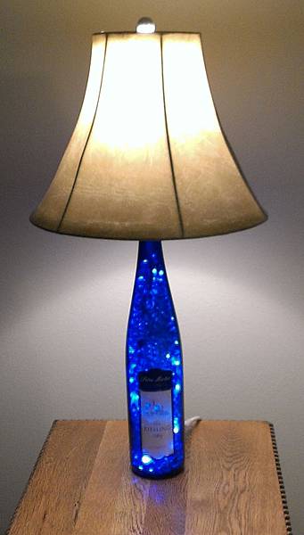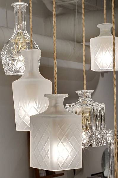這燈具DIY的構想,就是把喝過的酒瓶拿來做檯燈,做吊燈。現在的酒瓶也是千奇百種,選項很多。