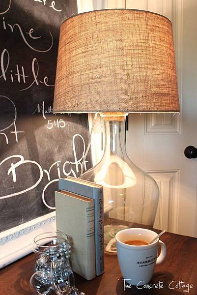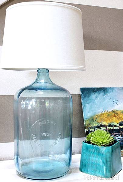 最簡單的方法就是把一個大大的空玻璃瓶當作燈座,只要買個燈罩套上去,就是個獨特好看的檯燈,這樣簡單的DIY,別說有難度,只要你願意,誰都可以完成。