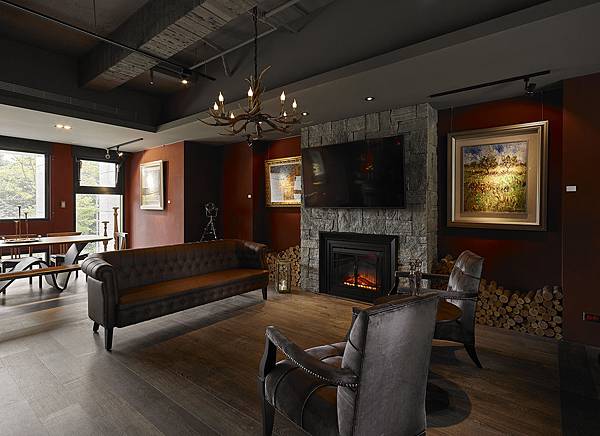 原始粗獷的石牆,現代精緻的電子火爐,原木堆疊的裝飾,大型藝術油畫,大器皮質沙發,古典水晶吊飾,Hi End音響系統…. 總總元素的搭配,營造一種宜古宜今的品酒氛圍。