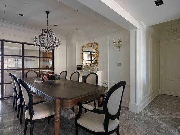 現代古典風格的展現,也透過華麗的水晶燈,雕花的金屬鏡面,閃亮的錫器等物件,來呈現華麗的古典質感。三代堂的設計基調就如此敲定。