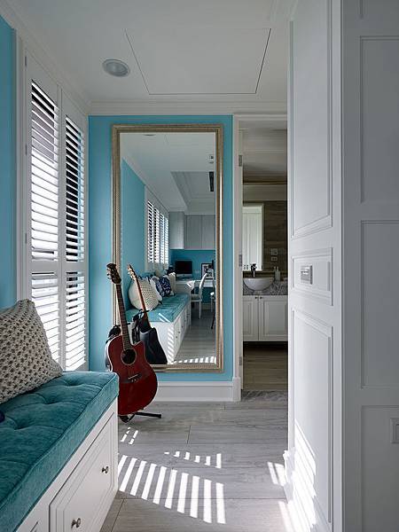 我們敲定以美式現代古典風格為設計主軸,因為女主人喜愛多點美式大宅的華麗感,有現代時尚感,但不要過於繁複的金碧輝煌。男主人期望有個臥榻的空間,女主人不愛單調的設計,喜愛Tiffany藍的華麗感...