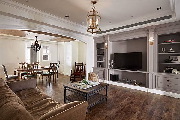 黃太太的新婚房是位在林口的毛胚屋,格局全新規劃,沒有局限。黃先生留學英國,著迷於神探福爾摩斯的英倫風情,這個新房的設計陳設,很快地就被確認定調為英式古典的風格設計。